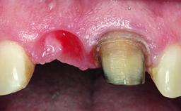 A 49-year-old female patient was referred for implant therapy to replace the upper right central incisor (tooth 11). The tooth had been assessed by an endodontist who diagnosed a vertical fracture of the root. The tooth had a hopeless prognosis and needed to be extracted. The patient was healthy and was not taking any medications. She was allergic to penicillin. The patient had high esthetic demands but her expectations were realistic. The extraoral examination revealed no facial asymmetries. The right temporomandibular joint demonstrated an opening click but was otherwise asymptomatic. The lip line was high with a significant gingival display.