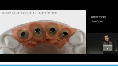 O objetivo da aula foi abordar a importância das fases de planejamento e execução das etapas de uma reabilitação protética com o uso de implantes osteointegráveis com enfâse em oclusão e seus princípios. Através de técnicas de condicionamento tecidual, eleição de materiais reabilitadores e ajustes oclusais é possível entender o que é área funcional de um implante e a sua reabilitação em áreas comprometidas esteticamente. Aula baseada em alguns trabalhos científicos relevantes com a descrição de técnicas e materiais assim como a sua importância na implantodontia atual.