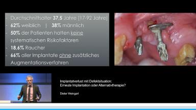 Basierend auf diversen Studien und eigener klinischer Erfahrung stellt Dieter Weingart seine Erkenntnisse und Schlussfolgerungen zum Thema Implantatverlust mit Defektbildung vor. Er illustriert das Thema mit eigenen klinischen Fällen inklusive Langzeit-follow-ups.