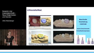 Der Vortrag gibt eine strukturierte Übersicht zu den dentalen Keramiken mit materialkundlichen Hintergrundinformationen und starkem Fokus auf die klinische Anwendung. Es wird der ideale Einsatz von Lithiumdisilikat und Zirkonoxid besprochen, sowie die empfohlene zahntechnische Verarbeitung und Gestaltung. Auch wird auf den korrekten Umgang in der Praxis hingewiesen, vom Anätzen, über die bevorzugte Befestigungsart, bis zum richtigen Vorgehen beim Einschleifen. Vor- und Nachteile von monolithischen Rekonstruktionen, wie auch von zementierten oder verschraubten Versorgungen werden aufgezeigt. Schliesslich wird auf die verschiedenen Abutmenttypen eingegangen und es werden klinische Überlebensraten von Implantatversorgungen präsentiert.