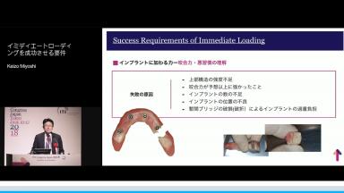 全顎的な治療における患者満足度を高めるために免荷期間のない抜歯即時埋入、即時荷重が望ましい症例も存在する。この講演では即時荷重を成功させる要件として、ドリリングテクニック、ガイデッドサージェリーのポイント、インプラントデザイン、補綴装置の形態、中心位採得によるDawson Techniqueなどについて解説されている。