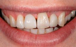 A 73-year-old woman was referred to the Division of Periodontology (University of Geneva School of Dental Medicine) after repeated unsuccessful treatment of a peri-implant infection. She was systemically healthy and did not smoke. The patient’s history revealed that, three years earlier, an immediate implant (Straumann Tapered Effect RN 4.8/4.1; Institut Straumann AG, Basel, Switzerland) had been inserted to replace the upper right central incisor. A metal-ceramic crown had been delivered using an adhesive resin cement. One year later, the patient had consulted another dentist due to discomfort in the soft tissues in the implant region. There was a suppurating peri-implant pocket, 10 mm deep. Peri-implant bone loss and excess luting cement were seen on the radiograph. The situation was treated with non-surgical debridement, amoxicillin, and repeated submucosal irrigation with a chlorhexidine digluconate solution. The patient was referred after the suppuration had persisted for several months.