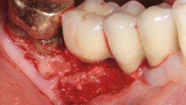 Reconstructive Treatment of a Peri-Implantitis Defect at an Implant in a Mandibular Molar Site