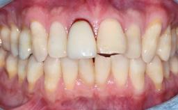 An 80-year-old female patient was referred to clinic for rehabilitation of her dentition. The patient’s medical history revealed no significant findings that would preclude routine dental and oral surgical procedures. She reported no drug allergies and was currently taking no prescription medications.