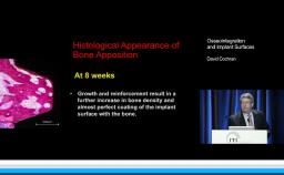 This lecture presents histomorphometric studies to demonstrate the strong relationship between bone and implant design, especially at the implant-abutment interface. The presenter shares key factors to explain the response of hard and soft tissue at the very first step of osseointegration. He focuses on the interaction between the design of the implant and the bone physiology. He develops the relationship between bone resorption and the inflammatory response of the host. The presenter also discusses different ways to decrease the inflammatory response at the implant-abutment interface. Supported by literature, a complete review of the various implant designs and their interactions with the bone is presented. The three major implant types are discussed: one-piece implant; two-piece implant with butt-joint interface; and two-piece implant with platform switching connection. This is a cutting edge lecture on the bone-implant relationship.
